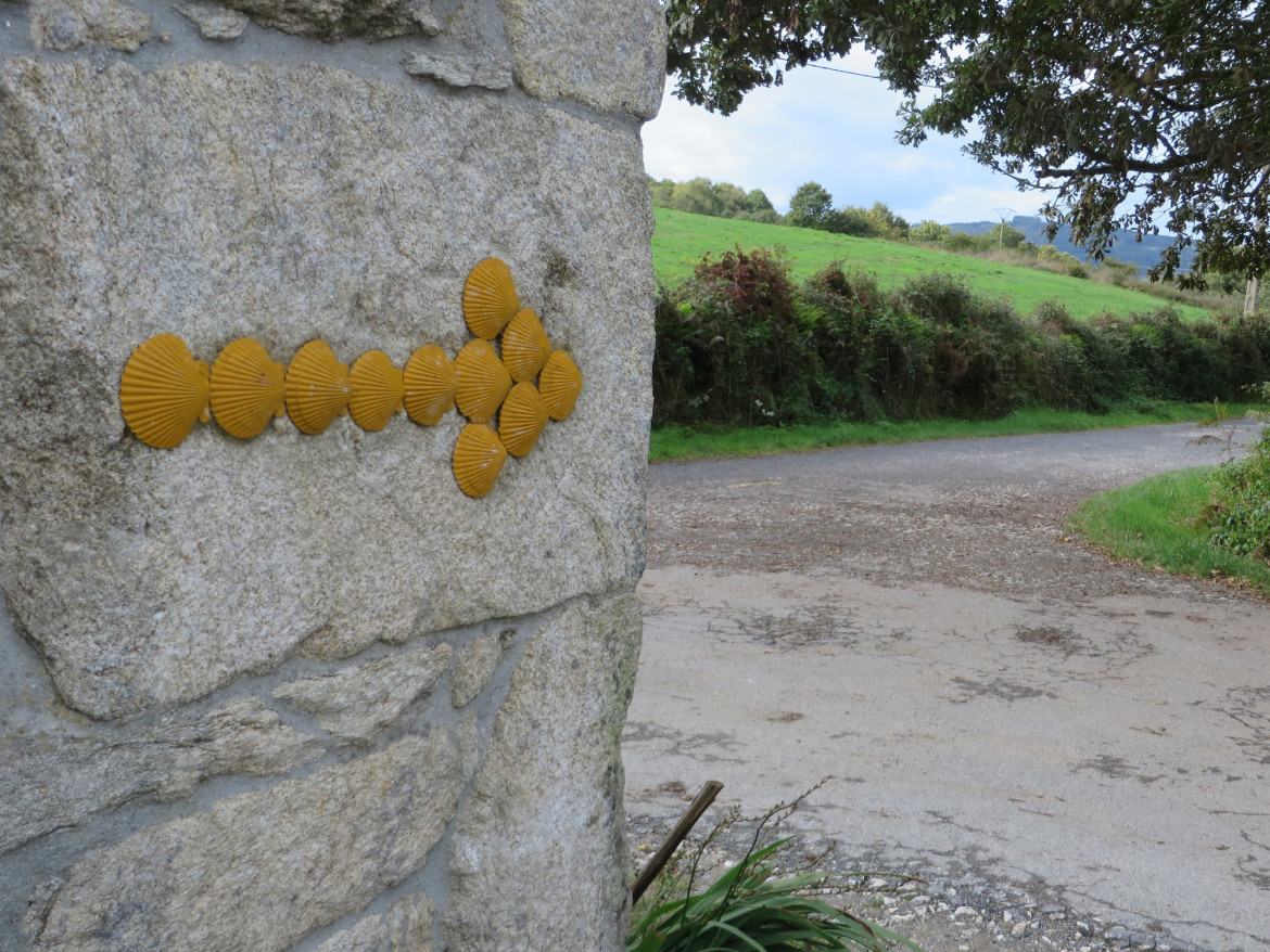 Speaking of us pilgrims, you can always tell who we are. We usually walk with some sort of limp or stiffness, we have more colour on the left side of our bodies than the right and we wear pretty much the same things every day. I saw a real authentic looking pilgrim today wearing drab rags, pulling an old cart and carrying a stick with a pot hanging on it. His faithful yellow Labrador followed obediently behind. Very neat!