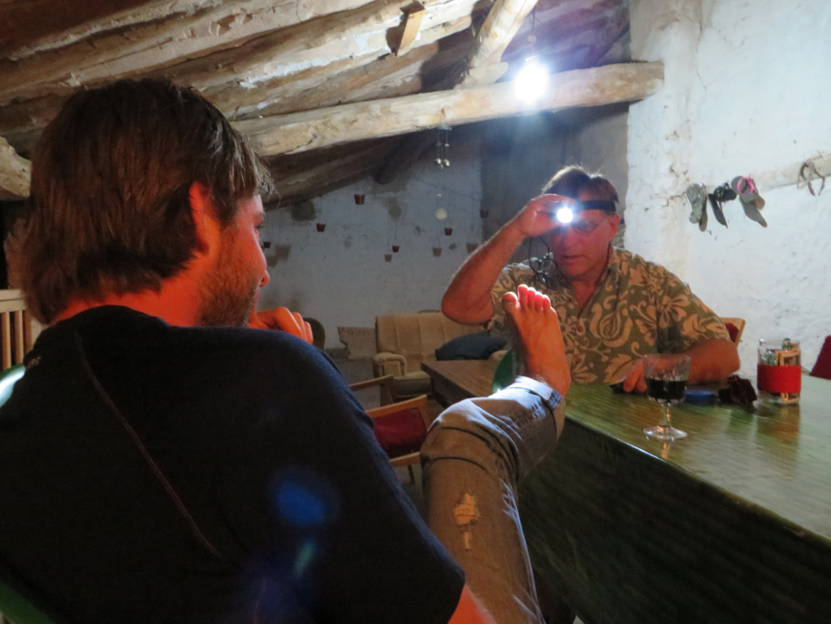 Andrew took advantage of the opportunity and had some ‘minor surgery’ done on his feet, or more like his blisters cut and drained.