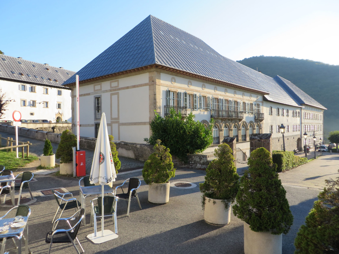 Roncesvalles was small consisting of the old monastery converted into an albergue plus a restaurant and bar. If there was more to the village I never got to see it. I wandered over to the bar across the street for breakfast which turned out to be quite an ordeal. It was a small place with a crazy long line-up inside to get a meager breakfast of toast and coffee with milk.