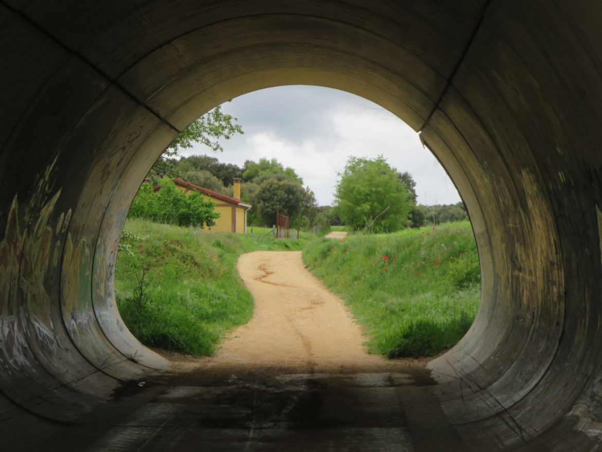 Colourful graffiti painted on tunnel walls along the Camino always caught my eye, but also the bright scene at the end.
